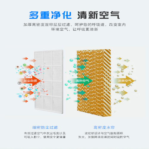 3、提高工作效率。湿帘通风降温设备解决闷热和含氧量不足导致工人的注意力下降问题,提高工作效率。使用水帘产品降温不仅可以解决厂房闷热问题更是在水份蒸发降温的同时产生了负离子氧,增加空气中的氧含量起到调节情绪、缓解疲劳达到提高工作效率目的。